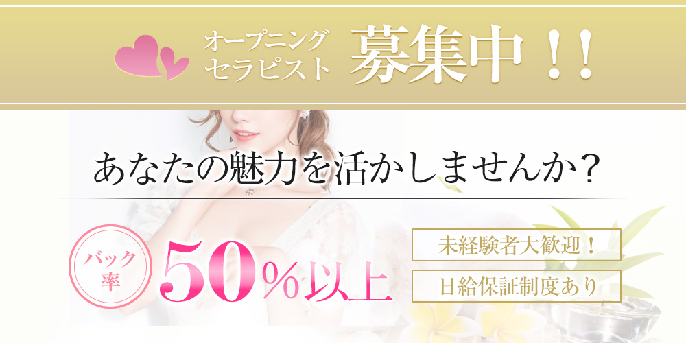 全てにおいてセラピスト様に働きやすい環境、給与システムを準備しております。セラピスト様からの意見も随時取り入れていこうと思いますので、勤務開始後も多数のご要望お待ちしております。